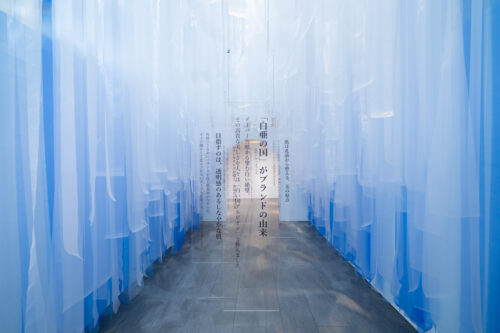 イベントのタイトルは「ALBION Beauty Tour ~透明の国へようこそ~」で、会場は「ブランドゾーン」「乳液ゾーン」「特別体験ゾーン」「セルフタッチアップゾーン」で構成。ブランドゾーンは純白の空間に柔らかな光が射し込み、透明感があふれる幻想的な世界が広がる。アルビオンの理念や価値観を示す文章や映像なども見られる。