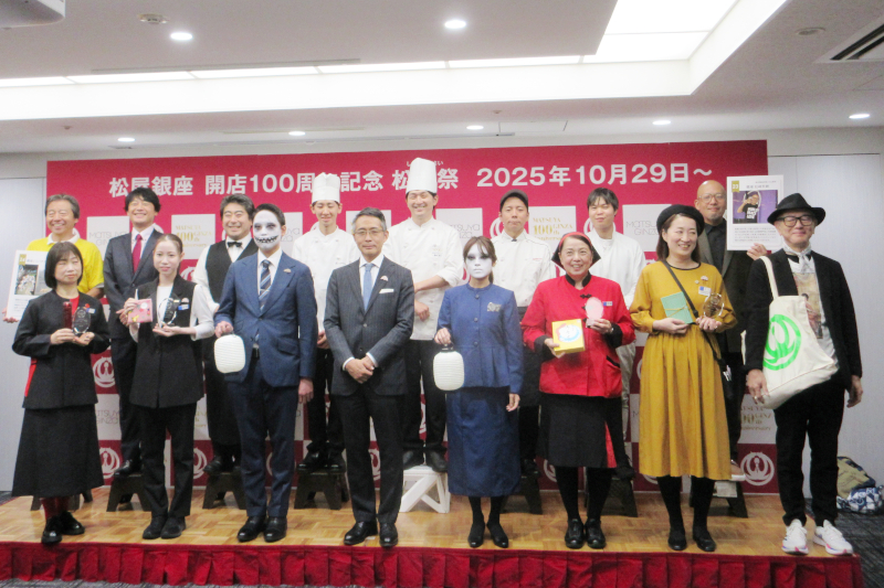 松屋銀座店は10月29日~11月11日、開店100周年の記念イベント「松縁祭(しょうえんさい)」を開催する。同店は今年3月~来年2月を周年期間としており、後半のメインイベントが松縁祭となる。限定商品の販売に加え、閉店後に店内で行うお化け屋敷イベント、一定金額以上の購入でもらえるオリジナルトレーディングガード、「銀座木村屋」と銀座の名店がコラボしたコッペパンなど、独自性の高い企画を盛り込んだ。古屋毅彦社長は「これまで支えて頂いた方への感謝に加え、挑戦も行い、新たな顧客接点を創出したい」と意気込みを述べた。