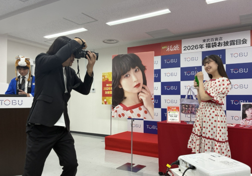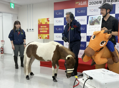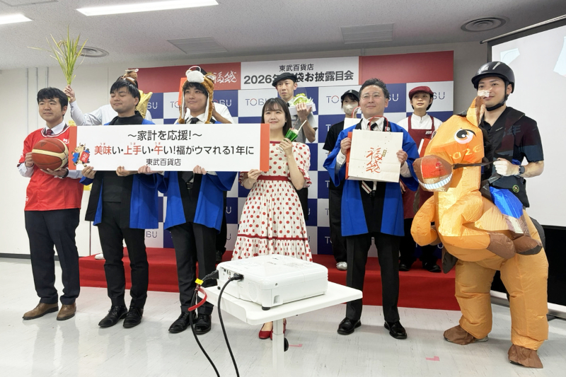 東武百貨店の2026年福袋は、「家計を応援!美味い・上手い・午い!福がウマれる1年に」をテーマに展開する。物価高が続くことから、家計応援になるお得な食品福袋を用意。近年人気の体験福袋は、昭和のアイドルのような写真撮影、劇場でのパイプオルガン演奏、1日駅長体験など、笑顔が生まれる体験ができる内容を企画した。来年の干支である午にちなみ、乗馬体験ができる福袋も販売する。