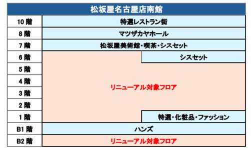 J.フロント リテイリングは18日、松坂屋名古屋店南館の地下2階と地上1階~6階を、パルコが運営する新しい商業施設にリニューアルすると発表した。 2026年2月から順次工事に入り、27年春の開業を目指す。対象面積は約1万9000㎡で、1階と6階の一部売場は百貨店側に残す。地下1階、7~9階も引き続き百貨店が運営する。