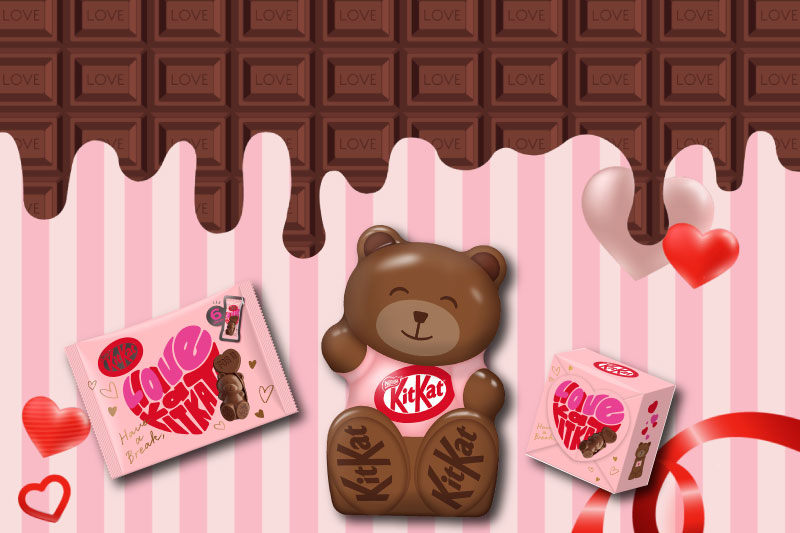 ネスレ日本が2022年からバレンタインシーズンに販売しているキットカット ハートフルベアーは、クマの形をかたどったかわいらしい立体デザインや、華やかなパッケージが特徴。バレンタインの楽しみ方が自分へのご褒美や、家族・友人へささやかな感謝を伝える日へと広がる中、“気軽に贈れるかわいさ”が毎年好評だ。