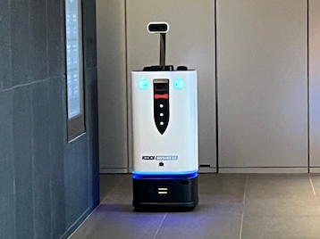 上に伸びたセンサーで感知し、エレベーターに自動乗車ができるデリバリーロボットも稼働する