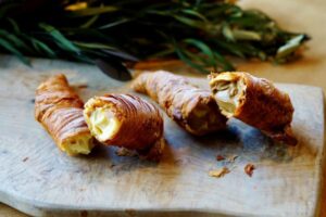パリパリのパイ生地にクリームをたっぷり詰めたナポリ伝統の菓子。今年のイタリア展のテーマ「シチリア」にちなんだ「シチリアレモンカスタード」と「ミシェラドーロコーヒーカスタード」の2種類をご用意。