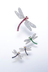 トンボブローチ(18K/Pt ルビー、ダイヤモンド) トンボピンズ(18K/Pt エメラルド、ダイヤモンド) トンボピアス(18K/Ptサファイア、ダイヤモンド)