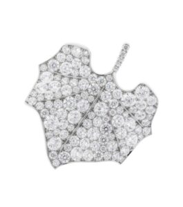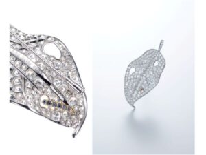葉脈のブローチ(Ptダイヤモンド、ブルーダイヤモンド、ブリオレットカットダイヤモンド)