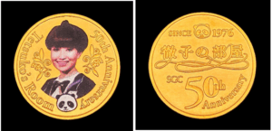 そんなアニバーサリーイヤーを記念し、黒柳徹子さんの美しい肖像(「徹子の部屋」第1 回目放送時の肖像)と徹子さんが愛するパンダをプリントした純金のメダルを製作しました。高価な純金製です。