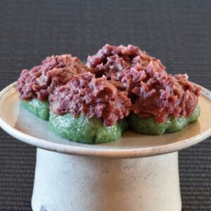 甘さ控えめあんこの上に別添の特製きな粉をお好みでかけてお召しあがりください。