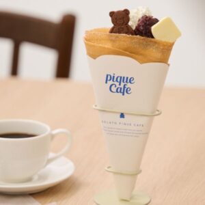 フランス産発酵バターを贅沢に使用した外はサクサク、中はもちもちのクレープ生地で、上品な甘さのあん、追いバター、ホイップクリーム、ピケベアクッキーを包みました。