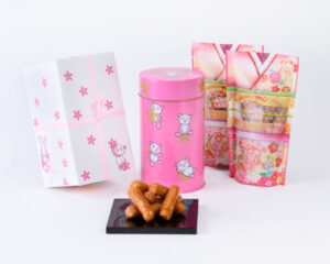 ガラスのように艶やかで、美しいかりんとうです。「さくらパンダ丸缶」は〈ゆしま花月〉とさくらパンダのオリジナルコラボパッケージ!