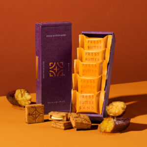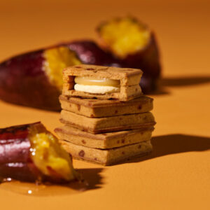 国産の安納芋ペーストやパウダー(※)を使用した、ねっとり食感の蜜芋バターキャラメルと濃厚な蜜芋バタークリームをたっぷりサンド。