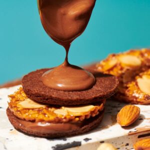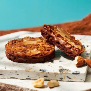 アーモンドスライスと皮付きアーモンドダイスをふんだんに使ったザクザク食感と、キャラメルの香ばしさが特徴です。