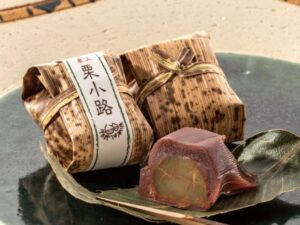 じっくりと蜜に漬け込んで程よい甘さと柔らかな歯ごたえに仕上げた国産渋皮栗を自慢の蒸し羊羹で包みました。