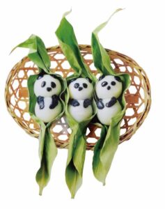 九谷焼招き猫 着ぐるみパンダ(右手挙げ/左手挙げ)(磁器、約縦4×横4.5×高さ7cm、約50g)