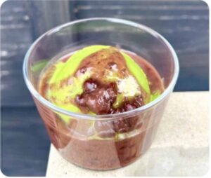 今回はこのイベントの特別フレーバーとして、「ともみジェラーto」の冬の風物詩、“ジェラートでできた特製シュトレン”が、カップジェラートになりました。シュトレンの味を再現したジェラートに、ラム酒やワインに漬け込んだドライフルーツとナッツたちを混ぜ込んで、自家製の栗の渋皮煮をトッピング!