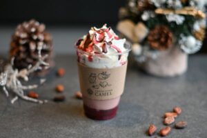 ナッティなサモア産カカオチョコレートと、いちごなどのベリーを組み合わせたクリスマス限定スムージーです。