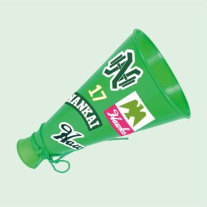 ロゴマークや切り文字のステッカーを選んで貼り付け、ミニメガホンが完成。