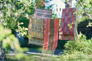 北欧の人々は、美しいテキスタイルがもたらす幸せとともに、豊かに暮らしてきたのです。そんな姿に思いを馳せながら、作品をご覧ください。