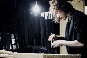 大学で建築を学び、建築士事務所にて勤務したのち畳店を継ぎ、2018年より光の反射による色の変化を利用して、多様なデザインの畳作品を制作している。