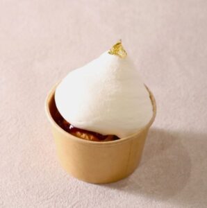 シェフの父は新潟県で30年以上の歴史を持つ養蜂家。そのはちみつを使った焼き菓子や生菓子が人気の店。ショートケーキで使用する素材をスコーンでアレンジし組み立てました。いちごは越後姫を使用しています。