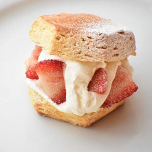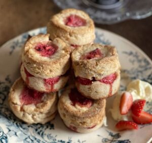 季節の果物を使って、常時15種ほどのスコーンと英国菓子を店主1人で作る川越菓子屋横丁のお店。川越産の香りと酸味のバランスの良いフレッシュないちごをサンドして焼きあげた、季節限定のスコーンです。