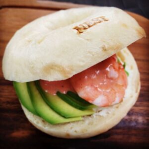 季節に合ったベーグルサンドやデンマークスコーンサンドのテイクアウト専門店。人気No.1の惣菜サンド。酒粕入りのもちもち食感のベーグルは、プリプリのえびとアボカド、オーロラソースとの相性がとても良いです。デザート系ベーグルサンドも3種のベリークリームチーズ、ショコラオレンジクリームチーズなど数種類のベーグルサンドをご用意!