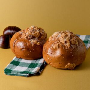 3種の食感と多彩なフレーバー、まぁるいフォルムが人気のベーグル専門店。くるみを練りこんだ「ふか」の生地で、ごろっと栗とモンブランクリームを包み、焼き上げました。トッピングはクッキー生地。栗とクッキー生地の食感の違いも楽しみのひとつ。テコナらしいまぁるいフォルムで、見た目の味わいも嬉しくなる、<テコナベーグル>のベストセラースイーツベーグルです。