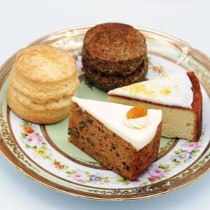 (左から時計回りに)【実演】クラシックスコーン 、【実演】紅茶のスコーン、レモンケーキ、キャロットケーキ