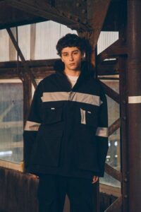 雪原の輝きと都市の未来を結びつける「SECRET EMBER FIREMAN JACKET」。 消防士のユニフォームを着想源にした力強いシルエットとリフレクティブなラインは、厳しい環境に挑む人々の姿を映し出し、着る人に頼もしさと高揚感を与えます。黒・赤・青の3色展開はそれぞれ異なる個性を放ち、都市のシーンから雪山まで自在に対応。背面にはメッセージ性のあるプリントを施し、自然と人との関わり、そして未来への視点を投げかけます。