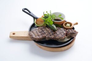 赤みが多く牛肉本来のうまみと香りが豊かなくまもとあか牛の高級部位のサーロインをステーキにしました。