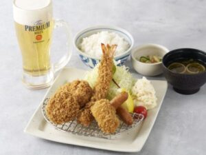 ヒレひとくちかつや車海老フライ、エビクリームコロッケ、黒豚メンチかつなどまい泉自慢の揚げ物を盛り合わせた贅沢なワンプレート。