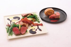 熟成黒毛和牛、前菜5種盛り合わせとデザートのセットです。