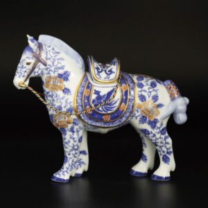 色絵吹墨墨はじき四季花文梟置物(幅14×奥行10×高さ18.5cm)