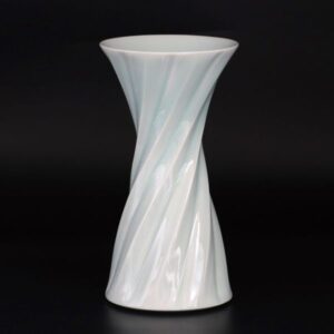 青白磁面取線彫花器(径14×高さ26.5cm)