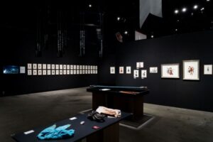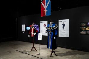 キャラクターが実際に使用・着用していた武器や衣装、小物などを多数展示。積み重ねられた時間の長さや、数々の戦いをリアルに感じられる展示品が並びます。