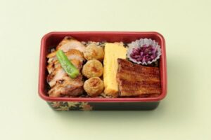 <ての字>が選び抜き、職人が丹精込めて焼きあげた国産うなぎの蒲焼に、「鶏の雉焼」「玉子焼」「つくね」が相乗りしている、バラエティ豊かなお弁当です。<ての字>あいのり弁当 各日20点限り 1620円(1折)■新館地下2階 和総菜