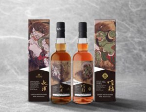 「風神」ボトルには1946年にウイスキー製造免許を取得した、「風の蒸溜所」とよばれる福島県の<安積蒸溜所>より、白ワイン樽にて熟成されたウイスキーを採用しました。「雷神」ボトルには、INAZUMA(イナズマ)シリーズ等数多くのウイスキーを手がける滋賀県の<長濱蒸溜所>より、赤ワイン樽にて熟成された原酒をそれぞれ特別にボトリングしました。