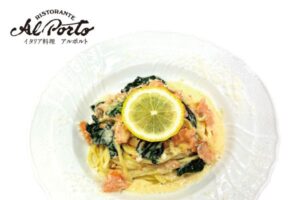 サーモンとほうれん草のクリームソーススパゲッティ レモン風味 1870円(1人前)