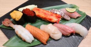 (右)【活一鮮】札幌市中央区 北のうまいもん10貫セット(お味噌汁付)