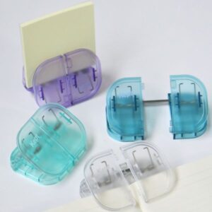 「はんぶんこ」にできるクリップ。厚みに差があってもしっかりページを固定し、プリント整理やメモ・アクスタスタンドにも便利です。