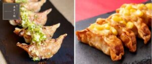 左)旨味溢れるコリコリ牛タン餃子 (5個)648円、(10個)1188円 右)北海道とうもろこしの揚げ餃子(6個)756円