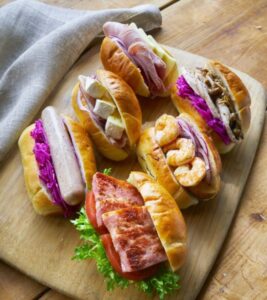 「雪うさぎベーカリー」塩パンサンド(北海道じゃがいもとガーリックシュリンプ)(1個)648円[各限定50]など ◎4月15日(水)~20日(火)◎催場