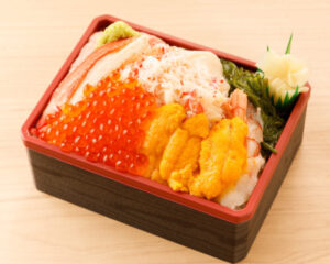 生うに、いくら、カニなど選び抜いた海の幸をたっぷりのせた、見た目も鮮やかな海鮮弁当です。