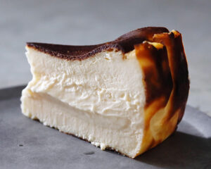 表面はこんがり、中はトロッ。甘さ控えめなのに、クリーミーで濃厚な〈ベルツ〉こだわりのバスクチーズケーキ。