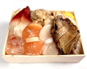 紅白ホタテや蝦夷アワビなど7種類の貝だけで盛り付けた海鮮弁当です。