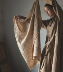 スロスターシルク糸を使った手刺繍が贅沢な、重厚で手仕事の温かみを感じるスカーフ。