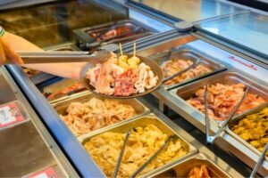 マルチグリドルで食材を焼きながら楽しむスタイルで、自分好みに調理するライブ感のある食体験が特徴です。スパイスや調味料も豊富に揃えており、味の変化を楽しみながら最後まで飽きずに楽しめます。そのほか惣菜やおつまみなど、手軽に楽しめるメニューも充実しています。