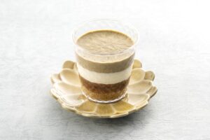 コーヒーをふくませたスポンジにつぶあんを重ね、ほうじ茶が香るチーズクリームを合わせました。レーズンをしのばせることで、香ばしさの中にふわりと甘酸っぱさが広がり、後味に奥ゆきが生まれました。