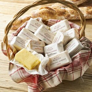 フランス・ブルターニュ地方産の牛乳を使用し、手作業で丁寧に練り合わせ成形される<BORDIER/ボルディエ>のバターは、濃厚で味わい深く、個性的なフレーバーが魅力。三ツ星レストランや一流ホテルでも愛用され、有塩・食塩不使用はもちろん、海藻の香りを感じるバター、玉ねぎの甘みと塩気が調和したバター、葉にんにくが香る有塩バターなど多彩なラインナップ。豊かな香りと滑らかな口溶けで、料理を格上げします。お気に入りの味がきっと見つかります。