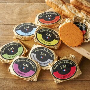 <BORDIER/ボルディエ>ブール ド バラット ドゥ(食塩不使用) 2700円、ブール ド バラット ドゥミ セル(有塩) 2700円、ブール ド バラット オ アルグ 3240円、ブール ド バラット 葉にんにく 3240円(各125g/いずれもフランス製)