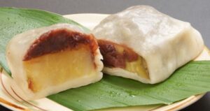 さつま芋に餡をのせてもっちりとした団子皮で包んで蒸した熊本の郷土菓子。